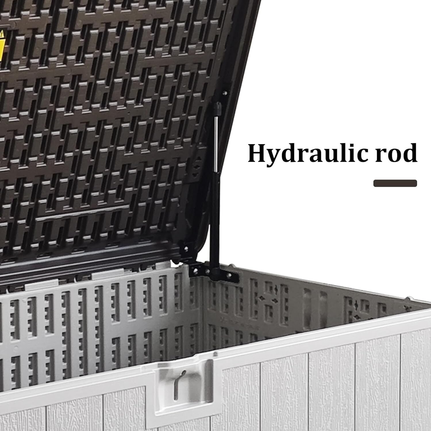 Equipped with hydraulic pistons for smooth lid operation, preventing sudden slams and ensuring safe and convenient access to stored items.