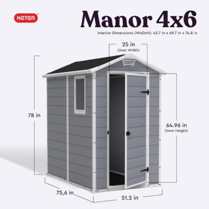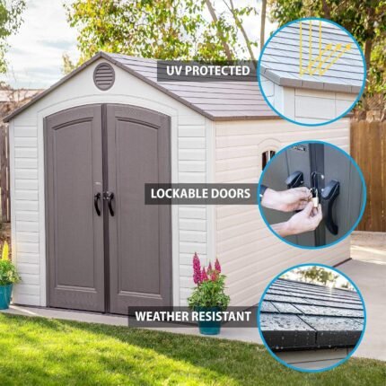 Made from sturdy resin panels, the structure offers strength and stability suitable for year-round outdoor use. The material is rust-resistant, water-resistant, and easy to clean.