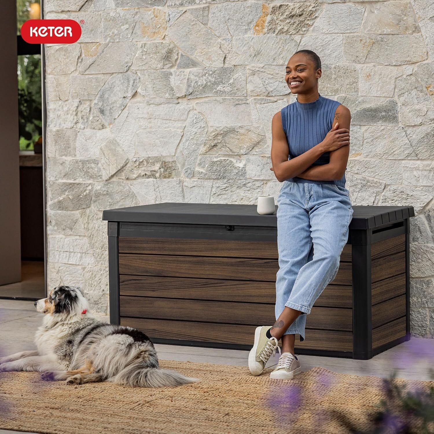 Keter Signature Collection 150-Gallon DECoCOAT Resin Deck Box – Rosewood