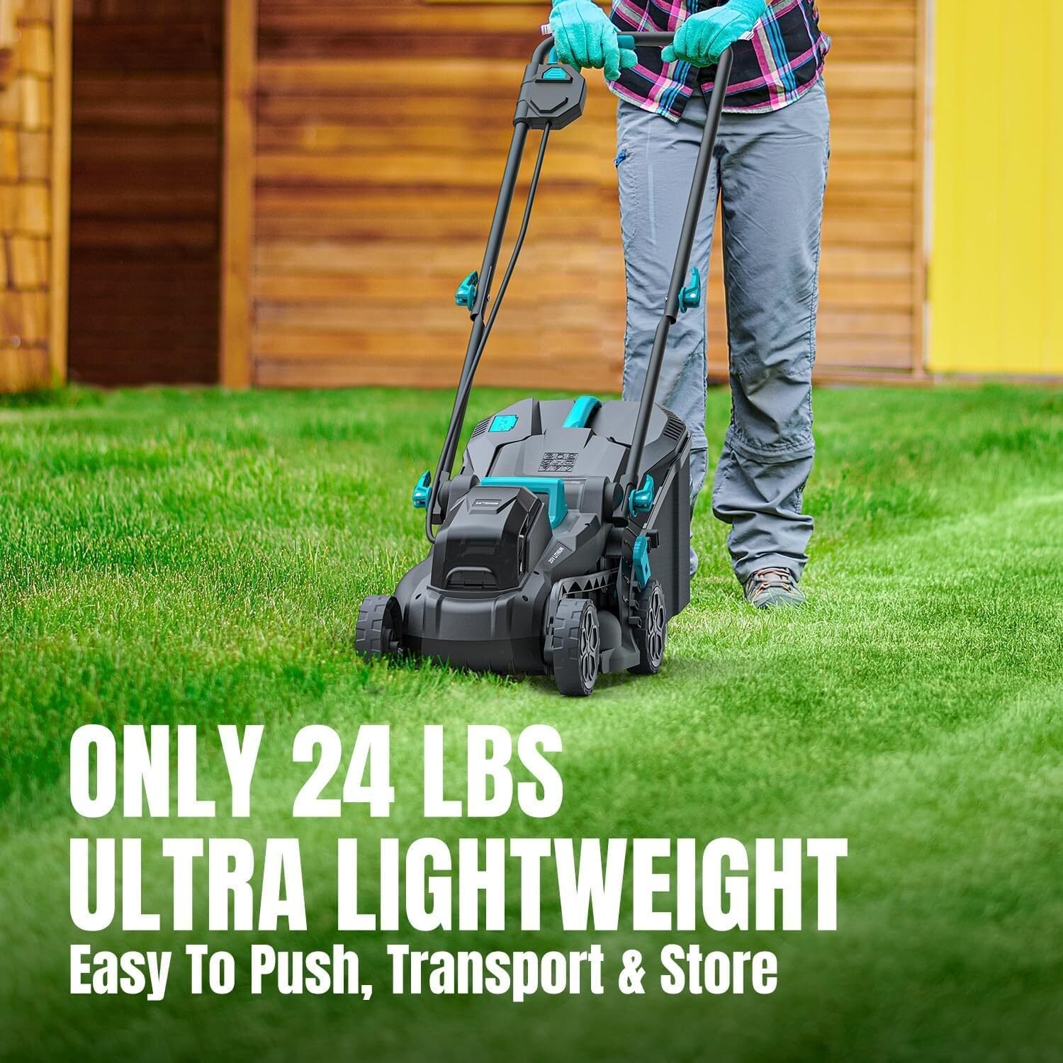 Weighing just 24 lbs, this mower is easy to push, pull, and carry. The foldable handle allows for compact storage and quick setup when needed.