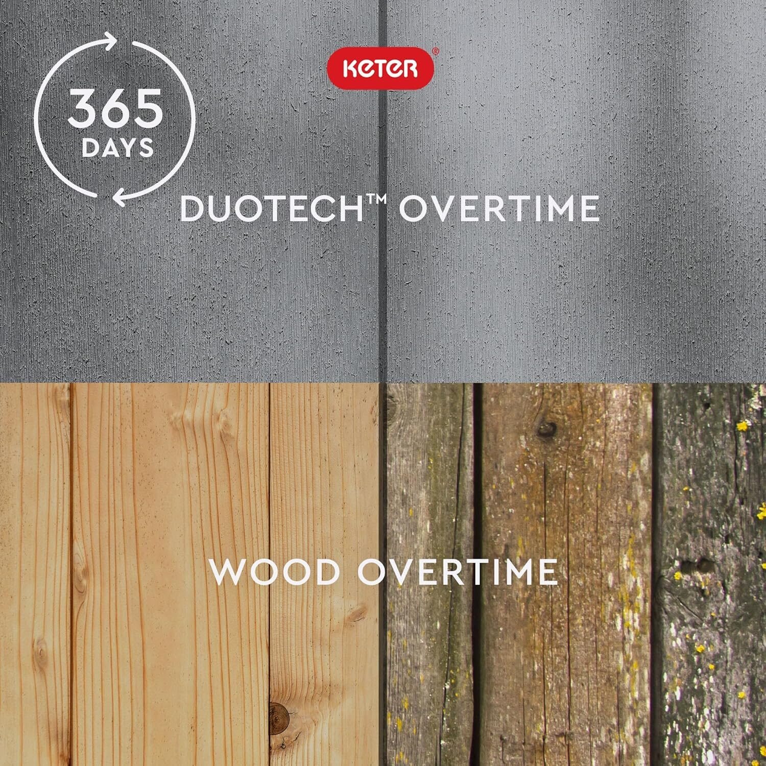 Crafted from heavy-duty, weather-resistant resin with a wood-like texture. The DUOTECH material prevents peeling, rusting, fading, and denting for long-lasting performance in any season.