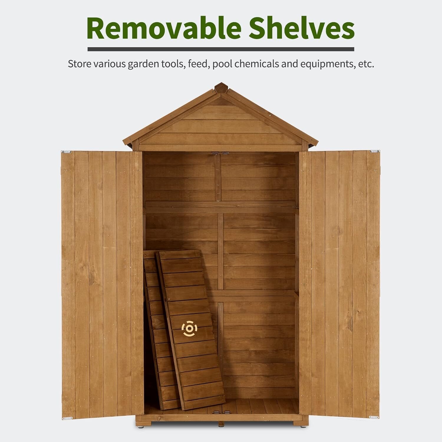 The MCombo Outdoor Wooden Storage Cabinet offers sturdy, space-efficient storage with a classic natural wood finish. With its removable shelves, waterproof roof, and reinforced structure, it’s a reliable and attractive solution for keeping gardening tools, patio gear, and outdoor supplies neatly protected year-round.